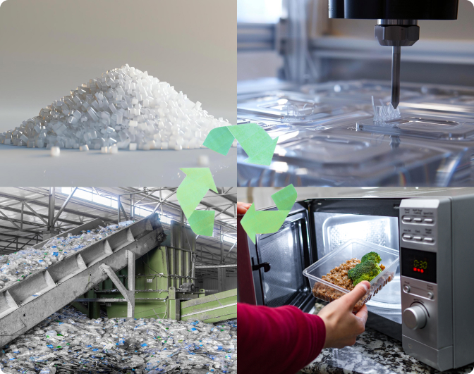 At Thermapet, our mission is to revolutionize sustainable packaging by developing innovative PET plastic solutions that significantly reduce environmental impact. By capturing 0.8% of the global microwavable packaging market within five years, we aim to eliminate over 1.74 billion microwave trays from the environment, saving more than 1.04 billion kilograms of Carbon Dioxide (CO2) emissions from production, and diverting over 307.53 million kilograms of CO2 from incineration. With 100 production lines globally, we are committed to increasing PET recycling rates by 51.26 million kilograms annually while reducing landfill waste by 2.14 million cubic meters each year. Together, we are paving the way for a greener, cleaner future